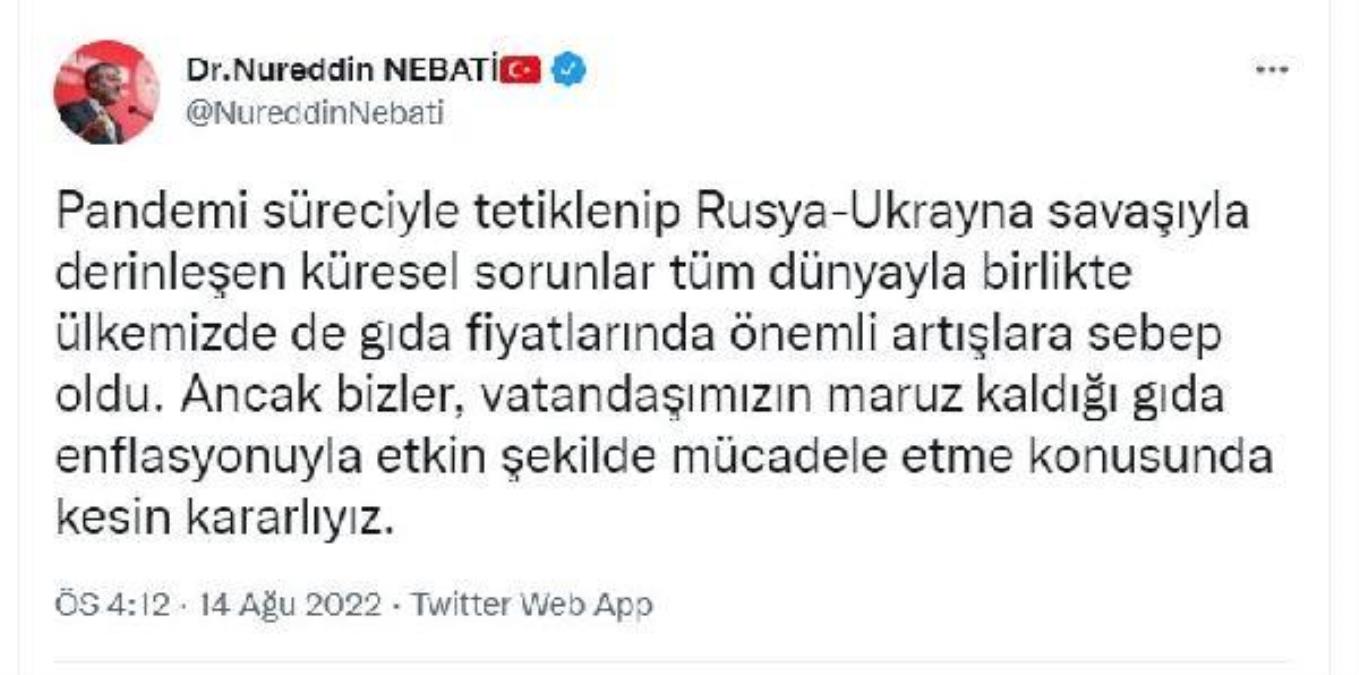HAZİNE ve Maliye Bakanı Nureddin Nebati, Tarım Kredi Kooperatifi marketlerinde yarından itibaren 30’dan fazla temel tüketim maddesinde indirimli fiyat uygulamasına gidileceğini hatırlatarak, ‘Vatandaşımızdan yana attığımız bu önemli adımın, ülkemizde faaliyet gösteren diğer zincir…