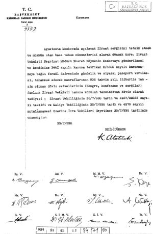 - ↑ 6,0 6,1 BCA 30-18-1-2, Yer: 84-71-16 Moskova'da açılacak Ziraat sergisini incelemek ve tohum örnekleri almak üzere gönderilecek olan Ziraat Vekaleti Neşriyat Müdürü Nusret Köymen'in harcırah, pasaport ve dövizi.